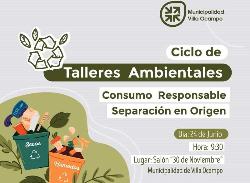 La Secretaría de Sistemas Productivos y Medio Ambiente de la Municipalidad de Villa Ocampo convoca a los representantes de los establecimientos escolares, clubes, instituciones intermedias y medios de comunicación al primero de los tres encuentros programados del Ciclo de Talleres Ambientales.