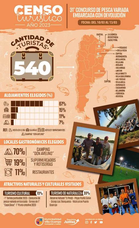 La Secretaría de Sistemas Productivos y Medio Ambiente de la Municipalidad de Villa Ocampo informa que la Dirección de Turismo llevó a cabo un nuevo censo turístico durante el fin de semana pasado, cuando nuestra ciudad fue sede del 31º Concurso de Pesca Variada Embarcada.