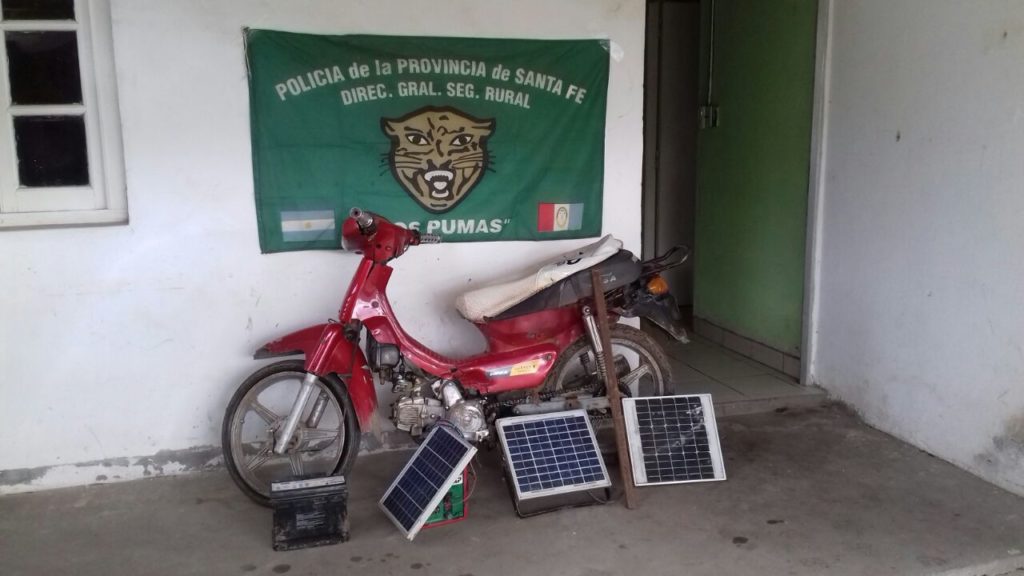 Personal Sección 5 Súnchales Raíz patrullaje preventivo Zona Rural Rafaela, observo que a una persona que se desplazaba en una motocicleta, quien al notar la presencia policial trata de darse a la fuga, siendo interceptado, se lo identifico como JUNCO M.M., de 43 Años, en el cual llevaba tres (03) pantallas solares Marca Solartec y una batería (01) Marca Helltar al preguntar por la procedencia de los elementos el mismo responde que las consiguió de la casa de su concubina, en barrio 2 de Abril de Rafaela; Personal policial volvió a entrevistar al causante, quien continúa respondiendo con evasivas; por lo que preventora procedió al SECUESTRO PREVENTIVO de los elementos y junto al masculino se trasladó hasta dependencia policial; posteriormente preventora solicita División Gabinete Identificaciones de la U.R. V – Rafaela, si el causante de marras posee antecedentes registrados en ésa; posteriormente informan que el llamado JUNCOS posee PEDIDO DE CAPTURA – CAUSA: SALIDAS TRANSITORIAS EXPTE. 810/12, JUZGADO INTERVINIENTE: JUZGADO DE EJECUCIÓN DE SANTA FE, REQUERIDA POR JUZGADO INTERVINIENTE, DE FECHA 01/10/12015, por tal motivo libro comunicación telefónica con el Sr. Fiscal en turno Dr. BUMAGUIN, Unidad Fiscal Nº: 5 – Rafaela, a quien se lo interiorizó de todo lo actuado hasta el momento, ordenando el señor Fiscal, que se proceda a la DETENCION de MANUEL M. JUNCO. Se prosiguen diligencias a los fines de individualizar al/los propietario/s de elementos incautados. Se prosiguen diligencias. UFI- Rafaela.-