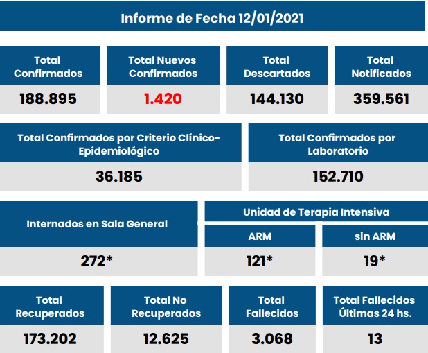 2021-01-12_Parte_MSSF_CoronavirusCovid-19: Provincia Santa Fe informó 1.420 nuevos casos y 13 fallecidos 11 enero, 2021