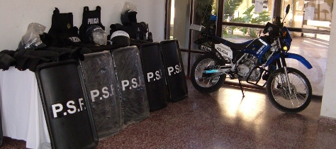 Unidad Regional XIX – En un acto desarrollado en el acceso a la Unidad Regional XIX, el jefe de la misma Comisario Mayor René Rodríguez, acompañado por el subjefe Comisario Mayor Javier Lamy, dio cuenta de los elementos recibidos por parte del gobierno provincial en base al informe de necesidades elevado oportunamente.Los elementos recibidos son: 15 equipos de comunicaciones, con base y cargador; 12 equipos completos antidisturbios que incluyen escudos, protectores personales, cascos, 30 chalecos antibalas, coderas y rodilleras protectoras.