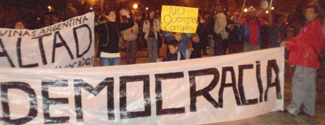 AUTOCONVOCADOS DE CALCHAQUÍ – Un importante número de vecinos participó de la primera marcha en defensa de la democracia realizada en la ciudad de Calchaquí y en reclamo al desfalco de boletas ocurrido durante las elecciones a concejales.Alrededor de las 20 horas de este jueves 1º, los vecinos autoconvocados comenzaron a acercarse al anfiteatro municipal, muñidos en algunos casos con pancartas portando leyendas como “Sí a la democracia”, “Donde están los votos” o “No queremos corruptos”. Paulatinamente, comenzaron a sonar las bombas de estruendo, las cacerolas y el cántico al unísono era “democracia”. Había manifestantes de todas las edades, incluso niños y de los diferentes barrios de la localidad.