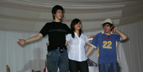 A continuación presentaron la obra “Pisa el palito”, siendo actores los jóvenes Alejo Lanzani, Aldana Koguc y Ayrton Amaya, una interesante presentación de estos jóvenes adolescentes lleno de picardía y atrevimiento.