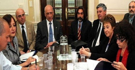 En representación de los gremios, acudieron los secretarios Sonia Alesso, Estela Toledo, José Testoni y Telma Alvarez, de la Asociación de Magisterios de Santa Fe (Amsafe); Pedro Bayugar y Patricia Mounier, del Sindicato Argentino de Docentes Privados (Sadop) Santa Fe; José Luis Aizza y Walter Ferroni, de Sadop Rosario; Ernesto Cepeda, de la Asociación de Magisterio de Enseñanza Técnica (Amet); y Rosa Bugnar e Irma Pelayo de la Unión de Docentes Argentinos (UDA).