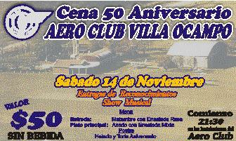 VILLA OCAMPO – El Aero Club Villa Ocampo cumple 50 años de vida institucional. Organizan una misa de acción de gracia y una cena aniversario con show musicales.El 05 de Noviembre de 1959 los señores Félix Bertos, Aníbal Gregoret y Lorenzo Pepermans fundaban el Aero Club Villa Ocampo.
