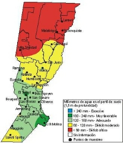 Según el último informe sobre la humedad remanente en el perfil del suelo elaborado por RIAN-RIAP (Red de información Agroeconómica Nacional) del INTA, las reservas de agua en el norte santafesino son críticas, mientras que en el centro provincial predominaron niveles de déficit moderado y en el sur se hayan condiciones favorables para el desarrollo de los cultivos.