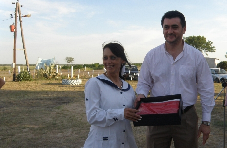 En el acto el Senador Pezz, hizo entrega de una bandera argentina y una de la provincia de Santa Fe a la directora del establecimiento educativo.