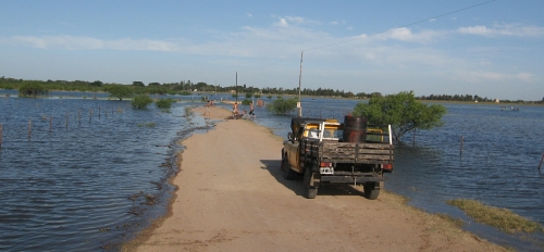 Desbordado generó el ingreso de agua, de una manera veloz, tal es así que en tres o cuatro días generó el taponamiento de la tierra, tanto en su laguna, con el corte del camino, como en los campos adyacentes.