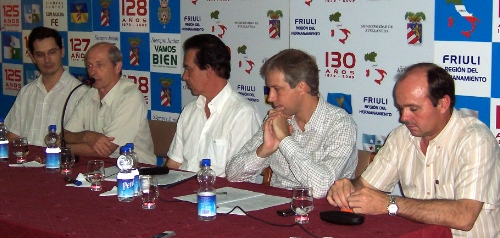 AVELLANEDA – EN EL SALÓN MUNICIPAL DE ACTOS – En el Salón Municipal de Actos de la municipalidad de Avellaneda, tuvo lugar una conferencia de prensa en la que la delegación, integrada por el Secretario de Gobierno, CPN Dionisio Scarpín; el Presidente de la UAA, Héctor L. Braidot y los Ing. Omar Gregoret y Danielo Tourner, dio a conocer detalles de su viaje a Italia. Scarpín destacó que además de la visita a la sede de la Región del Friuli y a la Provincia de Gorizia, estuvieron en la Banca de Crédito Cooperativa, federación que agrupa lo que aquí denominamos “cajas de crédito cooperativas”. Asimismo, estuvieron en el Instituto Paolo Diácono, donde estudian chicos de nuestra ciudad y en el ERSA, instituto de investigación agropecuaria, entre otros organismos y producciones agropecuarias en las que conocieron los sistemas de riego que poseen y las actividades que desarrollan para compararlas con los de nuestra zona.