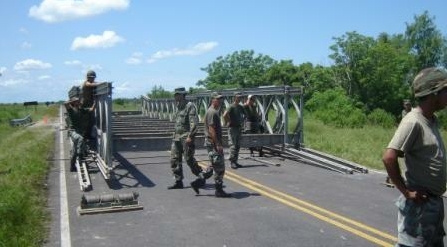 Esta previsto que en esta jornada efectivos del Batallón de Ingenieros Nº 1 con asiento en Santo Tome, finalicen la instalación de 24 metros de puente Bailey, para reemplazar, de manera temporal, la alcantarilla del arroyo Los Paraísos, que sufriera el hundimiento la semana pasada.