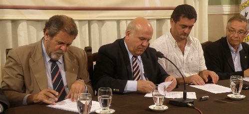 Con la presencia del Senador Provincial Federico Pezz, el Intendente de Reconquista, Ing. Jacinto Speranza, el Ministro de Obras Públicas y Vivienda, Arq. Hugo Storero y el Subsecretario de Planeamiento, Arq. Julio Talín, se firmaron diferentes documentos que vinculan a la Municipalidad de Reconquista con la Provincia de Santa Fe. El primer convenio suscripto estuvo referido al contrato que establece la ejecución del CAPS de Barrio Ombusal, a cargo de la empresa adjudicataria Interobras SRL.