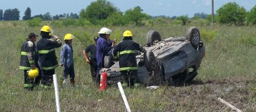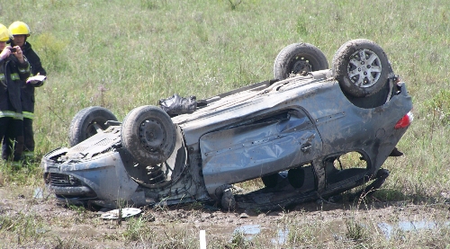 El vehículo se despista de la vera asfáltica, cruza la banquina opuesta, también cruza la zanja de agua, rompe el alambrado y termina con las ruedas al cielo luego de varias vueltas, según se mira las distintas abolladuras del vehículo.