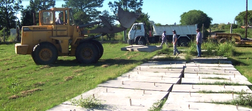 ACUERDO AVELLANEDA – RECONQUISTA – A través de un convenio entre ambos municipios, Avellaneda y Reconquista, la semana próxima estarían colocando las losas de cemento en el puente «Héroes de Malvinas», puente que une las localidades antes mencionadas.La Municipalidad de Avellaneda a través de la Secretaría de Obras Públicas hace saber a la población que luego de haber finalizado la construcción de 172 losas de hormigón prefabricado correspondientes al recambio del actual tablero del puente “Héroes de Malvinas”, este Jueves 28 de Enero de 2010 se realizó el traslado de las mismas desde la Incubadora de Empresas, ubicada en el Parque Industrial de nuestra ciudad hasta dicho puente.