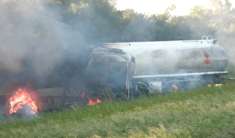 De ahí en más, comenzó la ardua tarea de los bomberos de Avellaneda y Reconquista para sofocar el foco ígneo que pervivía en ambos vehículos que a raíz del encontronazo fatal habían quedado, sobre la traza vial, la Ford Ranger, y en la banquina, el Scania 330, con su cisterna vacía pero con el consabido peligro que representaban los gases en su interior producto de resabios de cargas de combustible anteriores.