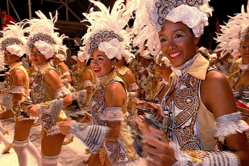 El espectáculo va rotando por los barrios más populosos, donde las principales avenidas sirven de sambódromo a las 27 comparsas que desfilan y en las que participan desde niños de 2 años hasta mayores de 60.
