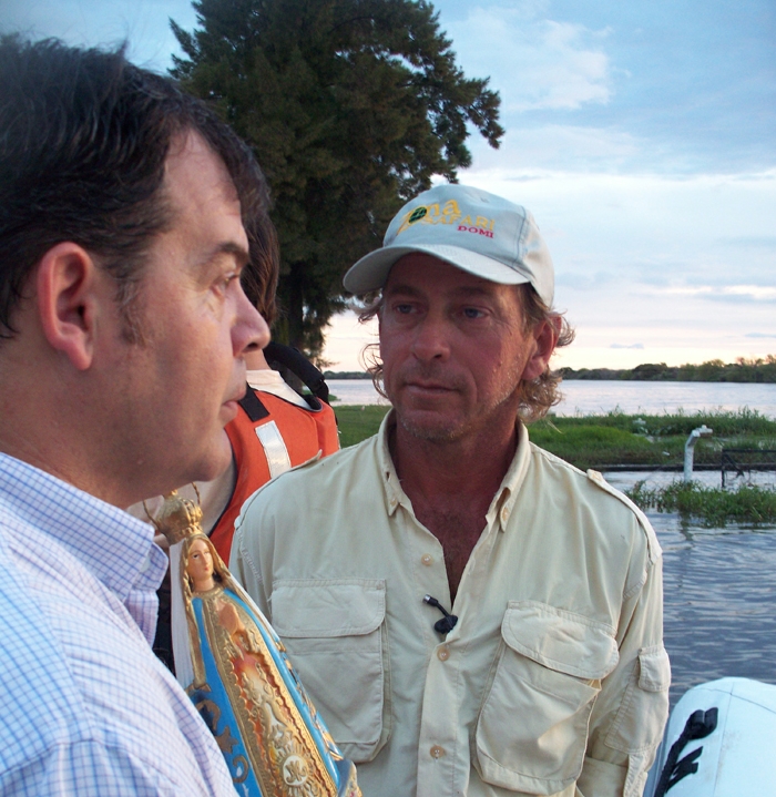 En medio de las emociones el intendente municipal licenciado Ignacio Osella junto al viceintendente profesor Gerardo Bassi les entregaron la bandera argentina para ser enarbolada el 20 de junio en Tigre y un presente para que los acompañe durante el resto del raid consistente en un mate forrado en cuero con la inscripción Goya, Corrientes. El intendente Osella destacó la importancia de esta expedición para mostrar la realidad de las localidades ribereñas en estos momentos donde el Paraná crece mas allá de lo esperado pero no sumerge las esperanzas y los objetivos de los pueblos. También fueron entrevistados por los periodistas de la Expedición Mesopotamia el titular de la COMUPE Ariel Benetti, quien comentó sobre la Fiesta Nacional del Surubí, el director de turismo César Perrotta; el concejal Alejandro Medina, el ex director de recursos naturales y actual fiscal general de la Fiesta del Surubí, Sergio Zajarevich, entre otros.