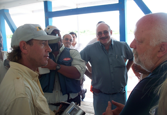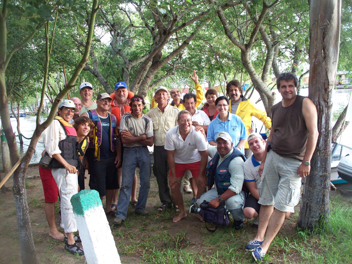 A medida que se acercaba al puerto de Reconquista se empezaban a sumar las embarcaciones de los amigos que salían al encuentro. Estuvieron representantes de la barra pesquera Pirá Vevé, Revista Agua y Sol, el programa La Brújula, el Concurso Argentino de Pesca del Surubí, el Club Caza y Pesca Reconquista – Avellaneda, entre otros, y pudieron haber sido más pero el mal clima no permitió la realización de un encuentro mucho más numeroso.