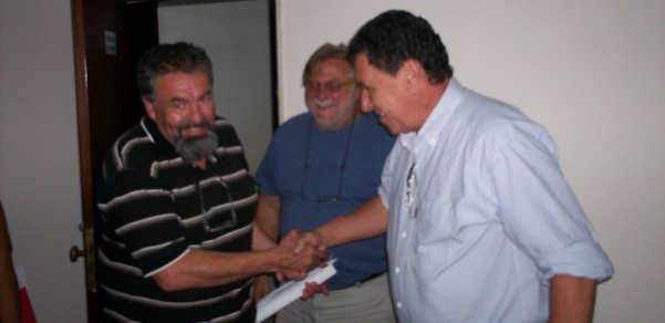 LAS TOSCAS – REUNION – El Intendente de Las Toscas, Dr. Leandro Eduardo Chamorro, recibió en su despacho de la sede Municipal al lider del Movimiento Independiente de Jubilados y Desocupados (MIJD) Raúl Castells.A minutos de comenzar el dialogo, el dirigente politico y social manifesto. «Me atienden tan amblemente en esta municipalidad que no son tan malos como me manifestaron», lo que provoco una gran sonrisa de parte del Intendente Leandro Chamorro y parte de su gabinete que se encontraba presente en la reunión. Cafe y mates amargos de por medio dialogaron, a lo largo de una media hora, de las diferentes situaciones actuales de la localidad.