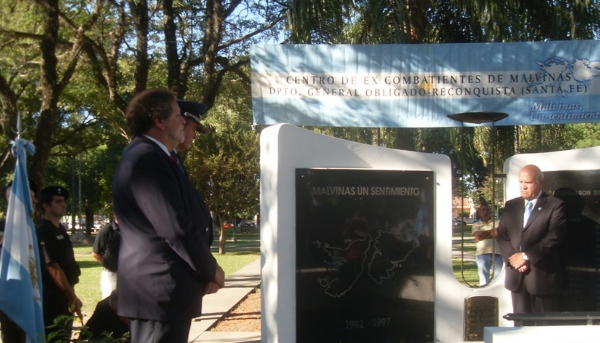 RECONQUISTA – MALVINAS: 28 AÑOS – Con una sencilla y emotiva ceremonia se conmemoró el aniversario número 28 del Día del Veterano de Guerra y de los Caídos en la Guerra de Malvinas.El acto se llevó a cabo frente al monumento de caídos en Malvinas, ubicado en la Plaza San Martín, y estuvo presidido por el Ministro de Obras Públicas y Vivienda, Arq. Hugo Storero, en representación del Gobernador Dr. Hermes Binner, acompañado por el Intendente de Reconquista, Ing. Jacinto Speranza, el Comodoro Rodolfo Domingo Hub, legisladores provinciales, Intendentes y presidentes comunales, autoridades militares, de salud y educación.