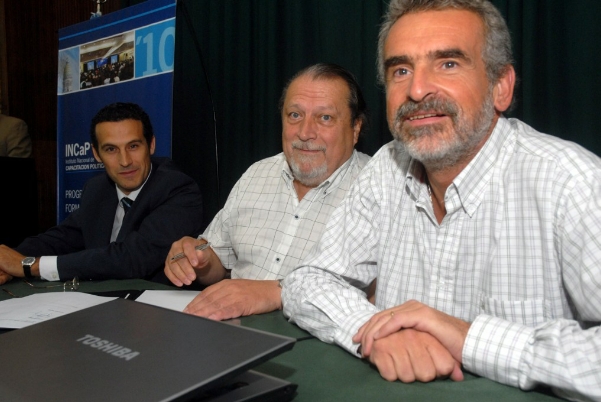 En el acto central realizado en la sede del SADOP, ante un auditorio absolutamente colmado, se procedió en primer término a la firma del convenio entre las autoridades del INCAP, el ISPP y el SADOP, en las personas de Guillermo Chavez, Agustín Rossi y Pedro Bayúgar respectivamente, quienes saludaron y dieron la bienvenida a los presentes. Luego de la rúbrica del convenio, se dio formalmente comienzo a la instancia de capacitación, quedando a cargo del Lic. Ricardo Rouvier la primera disertación.
