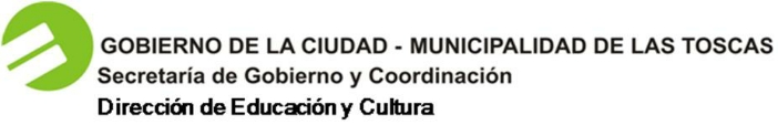 GOBIERNO MUNICIPAL DE LAS TOSCAS – La Dirección de Educación y Cultura del Gobierno Municipal de Las Toscas invita a participar del acto que se realizará el día 30 de Abril del corriente año a las 20.30 horas en la Esquina de las Calles 10 y 17, con motivo de dar inicio a los festejos del Bicentenario de la Patria.La Dirección de Educación y Cultura del Gobierno Municipal de Las Toscas invita a participar del acto que se realizará el día 30 de Abril del corriente año a las 20.30 horas en la Esquina de las Calles 10 y 17, con motivo de dar inicio a los festejos del Bicentenario de la Patria.