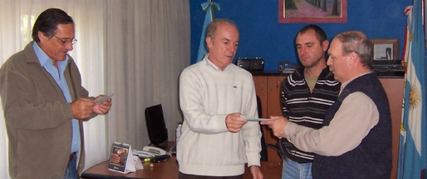 MALABRIGO – El Intendente municipal, Prof. Amado Zorzón junto al Secretario de Deportes, Prof. Fernando Bertschi hicieron entrega de dos subsidios de $ 10.000 cada uno, al presidente del Centro Social Cosmopolita, Sr. Juan Manuel Centis y al presidente del Tiro Federal Argentino Ella, Sr. Eldo Suligoy.El Intendente municipal, Prof. Amado Zorzón junto al Secretario de Deportes, Prof. Fernando Bertschi hicieron entrega de dos subsidios de $ 10.000 cada uno, al presidente del Centro Social Cosmopolita, Sr. Juan Manuel Centis y al presidente del Tiro Federal Argentino Ella, Sr. Eldo Suligoy.