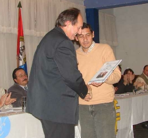Seguidamente el Secretario, Lic. Laurence De Nardo expuso la Memoria propiamente dicha, apoyado en un material exhibido en pantalla gigante, con la finalidad de que los asociados observen las obras llevadas a cabo durante el ejercicio. Luego de ello, se homenajeó al Gerente, Sr. Roque Daniel Prez, quien durante el ejercicio Nº55 cumplió 30 años al frente de la Gerencia. Por tal motivo, el personal de la Cooperativa le hizo entrega de una plaqueta recordatoria.
