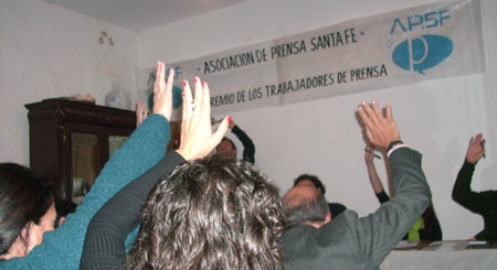 “Estamos trazando un límite muy claro: en el gremio de los trabajadores de prensa de Santa Fe no hay lugar para los que formaron parte del terrorismo de Estado”, afirmó uno de los asistentes.