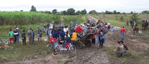 Justo 1 km antes de llegar al acceso de pavimento de San Antonio de Obligado, en un cruce de calle rural, los peones del Sr. Delfabro Rodolfo, hacían cruzar unos 100 vacunos de este a oeste, es decir, del pueblo hacia la zona rural, cortando la ruta Nº 11 y en ese preciso momento, el camión Volvo no pudo detener la marcha, lo que termínó por impactar en 12 animales vacunos grandes, siendo muertos en el acto 9 de ellos y los otros 3 hubo que sacrificarlo por las quebraduras que tenían.