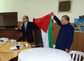 Estuvieron presentes Norberto Iza y Jorge Salun, integrantes de FEARAB Santa Fe, que han estado participando en el homenaje a los ilustres dirigentes de la comunidad árabe, donde además, obsequiaron pabellones árabes de Palestina, Irak y Al Ahuaz a la institución Siriolibanesa ocampense.