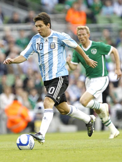 A los siete minutos Messi, encarando de derecha para el medio generó la primera situación de gol del seleccionado argentino, pero falló cuando pisando el área le picó por arriba la pelota al arquero irlandés, que estaba adelantado.