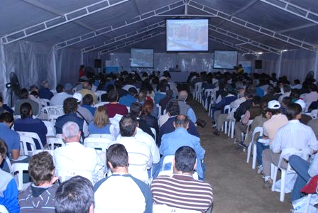 TERCERA JORNADA A CAMPO DEL IPCVA – Más de cuatrocientos productores y técnicos de la región se dieron cita en Campo Hardy, para seguir paso a paso un programa que comenzó a las 9 de la mañana en el establecimiento DON RICARDO de los hermanos Muchut.La bienvenida y apertura a cargo del director del Centro Regional Santa Fe del INTA, Ing. Agr. José Luis Sponton; del Ing Agr Oscar Moreal, del programa Carnes Santafecinas del ministerio de la Producción de Santa Fe y de los señores Dardo Chiesa, Presidente del IPCVA, y Maurico Muchut, miembro de la firma propietaria de «Don Ricardo».