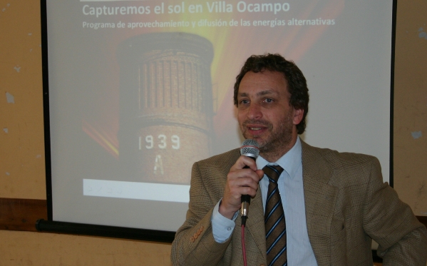 VILLA OCAMPO – ENRGÍAS ALTERNATIVAS – Villa Ocampo esta semana fue sede de la jornada de presentación del Programa Aprovechamiento y de Difusión de las Energías Alternativas “Capturemos el Sol en Villa Ocampo”, que planifica la instalación de 100 calefones solares en esa ciudad del norte provincial.El programa es desarrollado por la Secretaría de Estado de Ciencia, Tecnología e Innovación y los Ministerios de Producción; de Educación; de Aguas, Servicios Publico y Medio Ambiente; de Gobierno y Reforma del Estado. También se encuentran trabajando la Empresa Provincial de la Energía; la Municipalidad de Villa Ocampo y la Universidad Tecnológica Nacional, Facultad Regional Rosario.