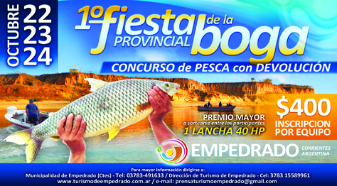 EN CORRIENTES – Esta primer fiesta se presentó en la Subsecretaria de Turismo de Corrientes.En la continuidad de múltiples actividades de difusión que los organizadores vienen llevando a cabo, este miércoles 13 de octubre, a las 11:30 hs, se llevó a cabo en el salón Pinin Palma de la Subsecretaria de Turismo de la Provincia (25 de mayo 1330), la presentación de lo que será del 22 al 24 de octubre la 1º Fiesta Provincial de la Boga.