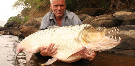 AFRICA – ENCUENTRA UN PEZ GIGANTE – El pescador británico Jeremy Wade de 52 años, se encontró, durante una expedición de pesca por el río Congo en África, con Goliat al pez tigre.Goliat está considerado como uno de los peces de agua dulce más temibles del mundo y es mucho más grande y más mortal que la piraña.