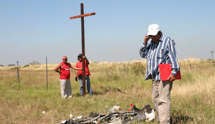 VILLA OCAMPO – A dos meses de la mayor tragedia del norte provincial, familiares colocaron una cruz de madera en el lugar del accidente. Dolor de los familiares cuando todavía se ven algunas cosas que están en el lugar.Fue un momento tenso. Se siente el silencio del dolor en el lugar, en los rostros de los familiares que se acercaron al lugar del accidente que hace dos meses se efectuara la mayor tregedia del norte provincial.
