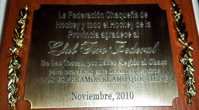 ¨Es momento de seguir profundizando nuestro trabajo, y continuar estrechando nuestros lazos de hermanos entre ambas provincias, nuestros objetivos se cumplieron ampliamente, y desde ya nos comprometemos a participar nuevamente el próximo año 2011 de los campeonatos de la Federación con mas énfasis y mayores objetivos por y para el mejor funcionamiento y crecimiento del hockey tosquense apoyados sin lugar a dudas por el hockey de esta hermosa provincia del Chaco¨ dijo en su alocución el Prof. Martin Fernández al momento de la entrega del premio, quien también agradeció a todos los directivos, clubes y delegados que conforman la Federación Chaqueña y en forma especial al Sr. Roberto Dellamea delegado del club Regatas de la ciudad capital provincial.