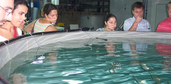Menchi mencionó que la acuicultura se viene trabajando desde las escuelas en Chubut. El Colegio 721 de Camarones es la única escuela secundaria que forma parte de una red de investigación, integrada a la red acuícola costera,y el gobierno tiene pensado convertirla en un centro educativo experimental. En Río Senguer también hay una escuela que trabaja en acuicultura continental, siendo una de las pocas que contempla el ciclo completo de reproducción.