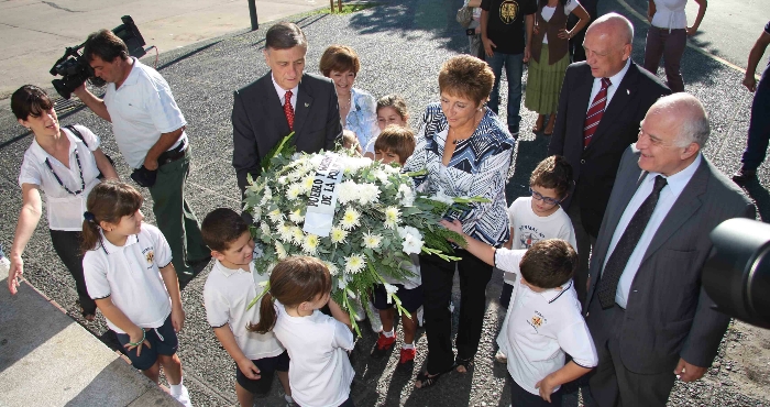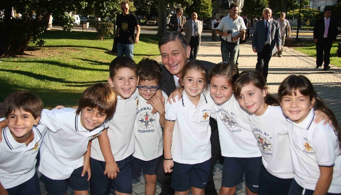 Del acto realizado en el patio del colegio ubicado en Corrientes y Mendoza, en el centro de Rosario, participaron alumnos de las escuelas provinciales Nros. 54, 68, 60, 411, 49, 1.254, el Normal Nº 2 y el colegio Dante Alighieri.