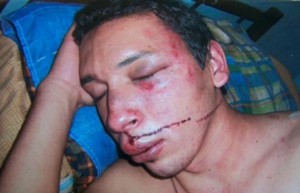 EN UNA DISCO DE RECONQUISTA – La fenomenal paliza que le dieron a la salida de una disco bailable. Dicen que le pegaron puñetes y patadas por la cara, la cabeza y el cuerpo hasta dejarlo inconsciente.Además de lo que muestra esta foto, tiene cortada la cabeza, politraumatismos y le fracturaron 4 piezas dentales. Para la policía fue un hecho «leve» y largó a los acusados luego de casi 12 horas de arresto y sin siquiera tener conocimiento de las consecuencias.