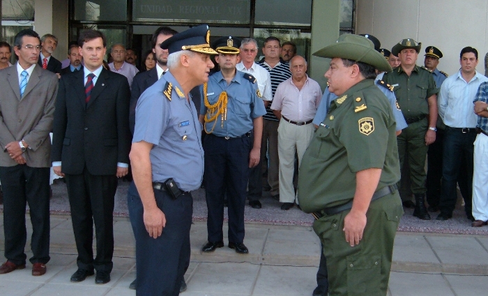 VERA – El Ministro de Seguridad de la Provincia, Dr. Álvaro Gaviola, presidió la asunción de nuevos Jefes policiales en un acto desarrollado frente a la Unidad Regional XIX de Vera.En dicha ceremonia, el director general de Policía de la Provincia, Osvaldo Daniel Toledo, puso en funciones al nuevo director general de Seguridad Rural, comisario inspector Orlando Oscar Mansilla, en reemplazo de Guillermo Lalli y al nuevo jefe de la UR XIX, comisario inspector Carlos Alberto Reginelli, en reemplazo de Jorge Visconti.. Cabe señalar que en este caso Reginelli será secundado por el comisario Inspector Darío Aguirre quien reemplaza a Marcial Saucedo.