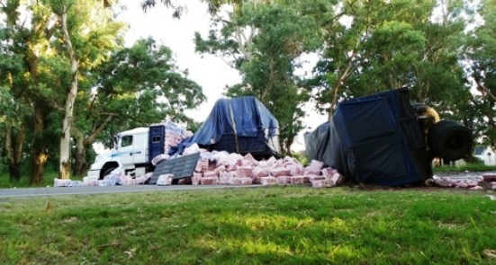 Un instante de distracción hizo que el acoplado muerda la banquina y ya no pudo controlar semejante mole.