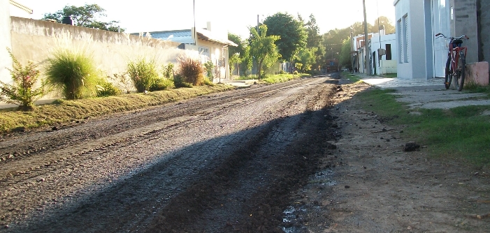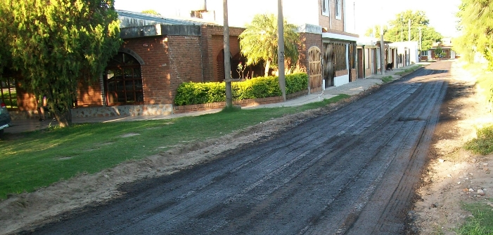 Los trabajos en ejecución consisten en nivelación y compactado del suelo, riego asfáltico, distribución de mezcla asfáltica en frió y compactado de la misma, con una capa de asfalto de 7 cm. de espesor, construcción de un cordón cuneta en el borde sur de la calle y la instalación de 4 columnas de iluminación, estimándose en un par de semanas la terminación de la Obra.