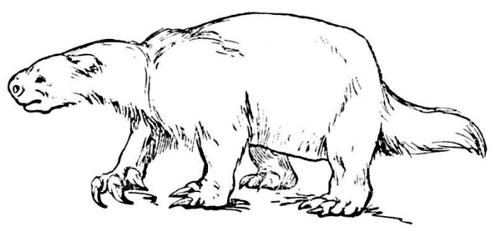 Este, sin dudas, es uno de los mejores hallazgos que se realizó en la zona; se trata de un Glossotherium, un perezoso gigante de gran talla. Este animal medía 3,5 metros de la punta del hocico hasta el final de su cola y 1,5 de alto a la cruz, con un peso superior a la tonelada.
