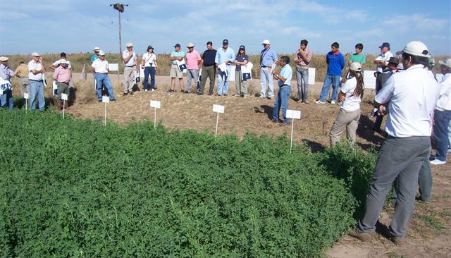 INTA – INSTITUTO NACIONAL DE TECNOLOGÍA AGROPECUARIA – Alrededor de 40 productores, muchos de ellos tamberos, se dieron cita en el Establecimiento «El Gateado» de la familia Andreu, Paraje Cuatro Bocas, para hablar de alfalfa.La jornada se desarolló en su totalidad en el campo, donde se están llevando a cabo ensayos con esta pastura.