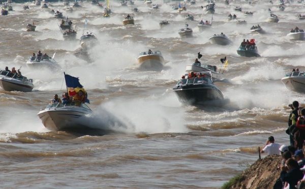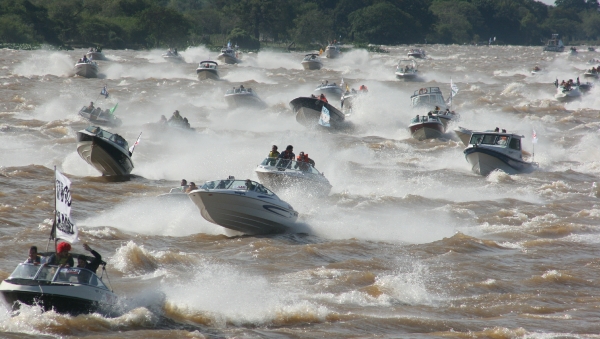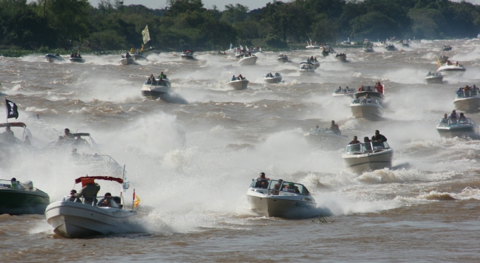 GOYA – CORRIENTES – Esta largada de la XXXVI Fiesta Nacional del Surubí en Goya, Corrientes, es sin duda, la mejor del país, y por qué no del mundo, donde 756 lanchas participantes de esta tradicional fiesta, vuelve a marcar un nuevo record mundial de equipos participantes.El clima empezó a mejorar y eso hizo que la posibilidad de suspenderse el evento por el viento que había no caducó. A las 12 horas se suspendía, pero a las 13,30 horas, lo anunció el fiscal general Víctor Hugo Freitas, echando por tierra la posibilidad de suspender ante el viento que se hacia sentir en horas de la tarde del sábado, provocando oleajes en la zona del Río Paraná.