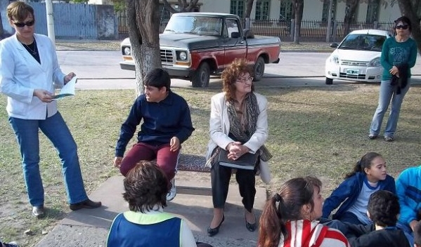 VILLA OCAMPO – Para celebrar el Día del Libro (15 de junio), y en el marco del programa “Palabras al Viento”, los alumnos de la Escuela Especial 2034 de nuestra ciudad realizaron una jornada de lectura en la Plaza San Martín (por la mañana) y actividades artísticas en la Plaza Belgrano (por la tarde).Su directora, María Inés Floreta, comentó que “lo que los chicos hicieron durante toda la semana es salir a la calle a mostrar lo que trabajan en la escuela, ellos tienen su biblioteca en el aula; y se les ocurrió sacar la biblioteca a la plaza, para compartir con todos aquellos que pasan, miran y preguntan, pueden ver qué libros tienen. Son libros que se fueron juntando, que donaron los padrinos, las maestras; hay cuentos, enciclopedias, manuales, es una biblioteca bastante completa, con unos 400 libros”.