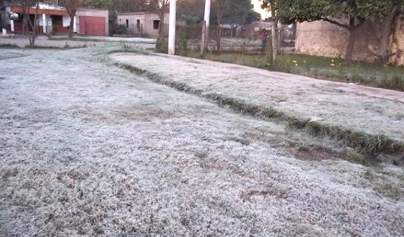 VILLA OCAMPO – Así amaneció la ciudad de Villa Ocampo en la jornada de este martes, con una temperatura de 1º.Por supuesto que la helada no se hizo desear y colmó la ciudad de escarchas que cubrieron los espacios verdes con ese tono blanco.