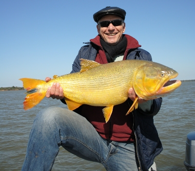 Felicidad, alegría, sentimientos encontrados al ver tamaño dorado, de unos 12 kgs., con esa boca y esos dientes mostrando su bravura. Orgullo de haberlo sacado y más orgullo el saber que a pesar de su grandeza, lo devolvería al agua.