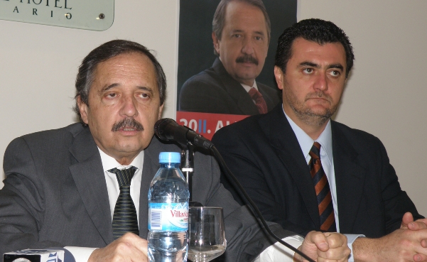 SENADOR PROVINCIAL FEDERICO PEZZ (FPCyS) – El Senador Provincial y candidato a Diputado Nacional Federico Pezz, acompaño al candidato a Presidente de la Nación Ricardo Alfonsín, en la recorrida por la ciudad de Rosario.A primera hora Alfonsín y Pezz, atendieron a la prensa del Sur de la provincia, que se interiorizo de la campaña nacional y las cosas que diferencias que tiene el candidato radical con quienes encaran el gobierno nacional.